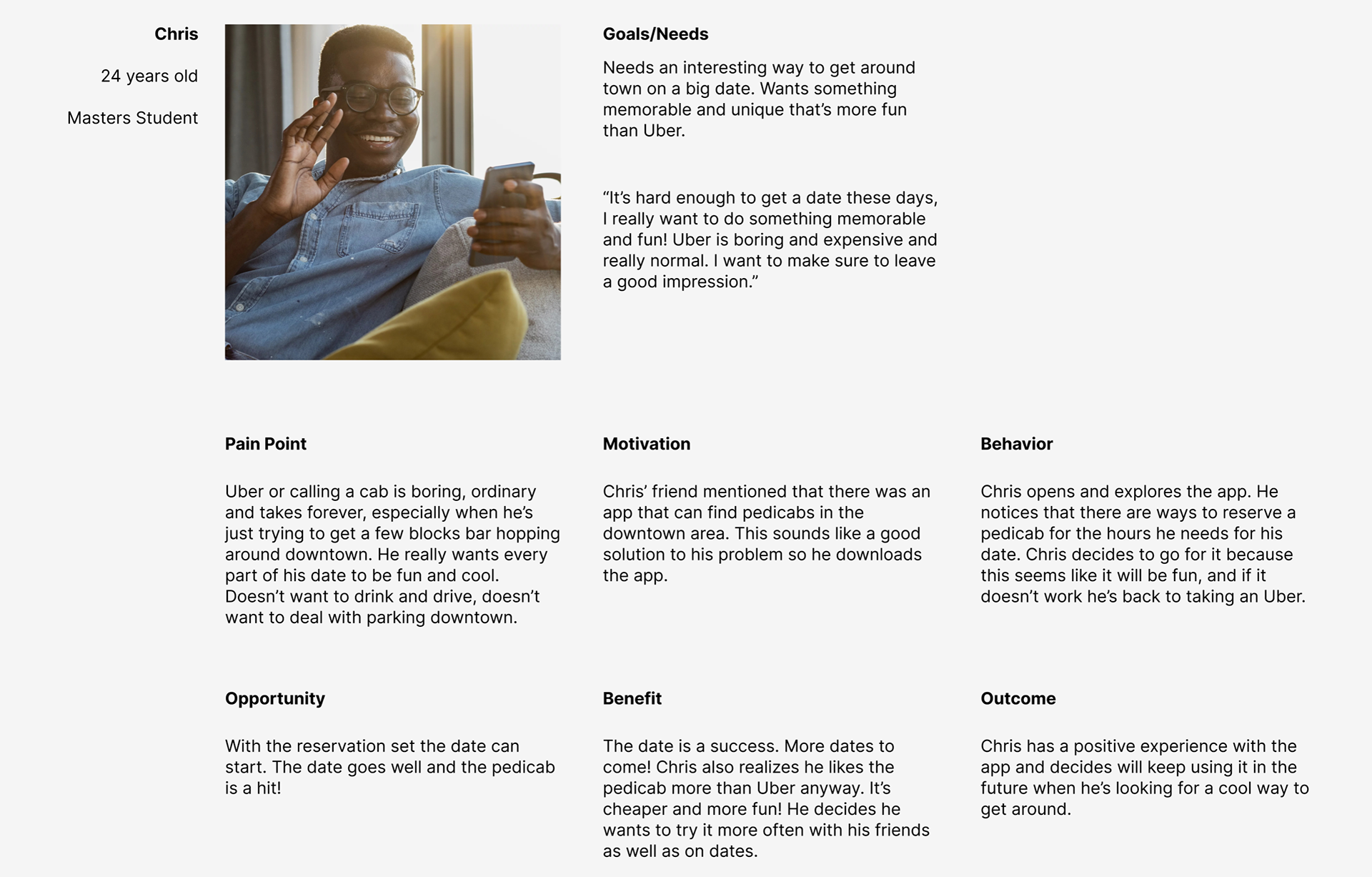 I have a personal love for pedicabs, in Eugene I drove pedicab for a little extra cash and as a way to have fun on the weekends. I would often meet people who fell in love with the service I provided and wanted me to drive them again. Unfortunately taking on so many random phone numbers got to be too much of a hassle to deal with. I wanted a way to connect with my customers but didn't want all of their numbers clogging up my phone. Out of that need came the idea for cabbie, a rideshare style app for pedicabs!